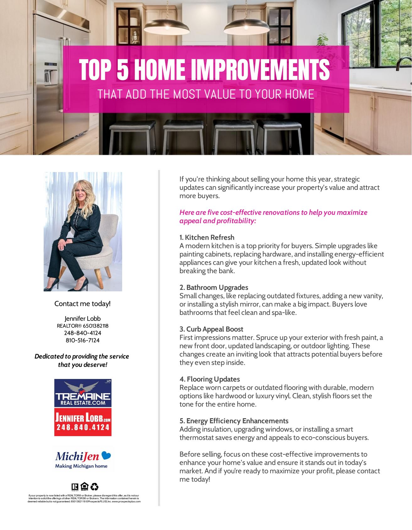 Top 5 Home Improvements That Add The Most Value To Your Home Jan. 16, 2026 | Written by: Jennifer Lobb back